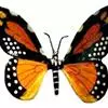 黑脉金斑蝶:翅阔8.6-12.4厘米。雄蝶较雌蝶为大。成年蝶颜色鲜艳,翅膀上有显眼的橙色及黑色斑纹,周围是宽阔的黑色边框,布有许多白色斑点。这种引人注目的着色是对捕食者的视觉警告,表示这个物种有毒;…全部>>