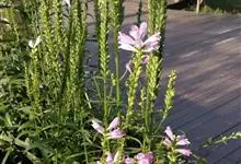 假龙头花 Benth.)是唇形科,假龙头花属多年生宿根草本植物。株高可达1米。茎丛生而直立,四棱形,叶片披针形,亮绿色,边缘具锯齿。穗状花序顶生,有花,花色粉色、白色、淡紫红,…全部>>