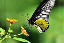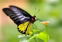 金裳凤蝶是凤蝶科、裳凤蝶属的动物。金裳凤蝶身体呈黑色,头、颈和胸侧有红毛,腹部有黑黄两色相间条纹,雄蝶前翅黑色,具黑天鹅绒光泽,各脉两侧灰白色,后翅金黄色,各室外缘有等腰三角形黑斑1枚,斑内侧有晕,…全部>>