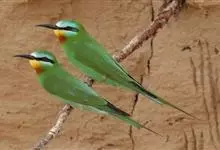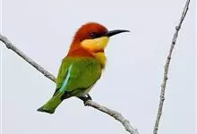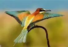 蓝颊蜂虎:是蜂虎科、蜂虎属的鸟类,共有2个亚种。体长27-33厘米,翼展46-49厘米,体重38-50克。嘴形细长而下弯,先端尖,…全部>>