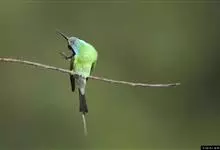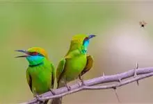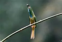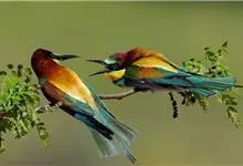 蓝颊蜂虎:是蜂虎科、蜂虎属的鸟类,共有2个亚种。体长27-33厘米,翼展46-49厘米,体重38-50克。嘴形细长而下弯,先端尖,…全部>>