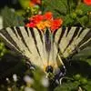 中华虎凤蝶是鳞翅目凤蝶科虎凤蝶属昆虫。双翅颜色为黄底黑纹,色如虎皮;雌、雄斑纹相同,但雌蝶的黄色往往要略深一些;后翅外缘呈波浪状,长有较短的尾突;除翅外,整体黑色,…全部>>