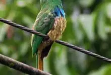 蓝须夜蜂虎是佛法僧目、蜂虎科的鸟类,体长约30厘米,是绿色林栖型蜂虎,蓝色的胸羽蓬松,嘴厚重而下弯。成鸟顶冠淡蓝,腹部棕黄带绿色纵纹。尾羽腹面黄褐。亚成鸟全身绿色。喉、胸部中央的羽甚长和亮色;该物种…全部>>