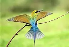 蓝颊蜂虎:是蜂虎科、蜂虎属的鸟类,共有2个亚种。体长27-33厘米,翼展46-49厘米,体重38-50克。嘴形细长而下弯,先端尖,…全部>>