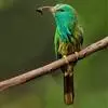 蓝须夜蜂虎是佛法僧目、蜂虎科的鸟类,体长约30厘米,是绿色林栖型蜂虎,蓝色的胸羽蓬松,嘴厚重而下弯。成鸟顶冠淡蓝,腹部棕黄带绿色纵纹。尾羽腹面黄褐。亚成鸟全身绿色。喉、胸部中央的羽甚长和亮色;该物种…全部>>