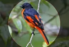 灰喉山椒鸟:共有8个亚种。体长18-22厘米。雄鸟头部和背亮黑色,腰、尾上覆羽和下体朱红色,翅黑色具一大一小的两道朱红色翼斑。中央尾羽黑色,外侧尾羽基部黑色,端部红色。…全部>>
