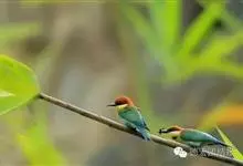 绿喉蜂虎是佛法僧目、蜂虎科的小型鸟类,共有9个亚种。身长22-25厘米,翼展29-30厘米,体重15-20克。喉绿色,额部、头顶至上背为锈红色,其余上体均为亮绿色。中央尾羽延长且端段狭细,…全部>>