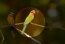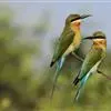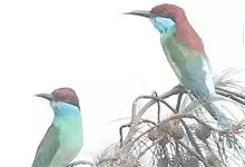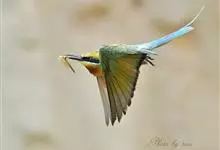 蓝颊蜂虎:是蜂虎科、蜂虎属的鸟类,共有2个亚种。体长27-33厘米,翼展46-49厘米,体重38-50克。嘴形细长而下弯,先端尖,…全部>>