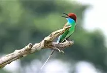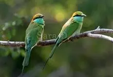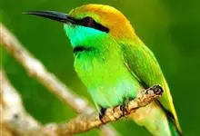 绿喉蜂虎是佛法僧目、蜂虎科的小型鸟类,共有9个亚种。身长22-25厘米,翼展29-30厘米,体重15-20克。喉绿色,额部、头顶至上背为锈红色,其余上体均为亮绿色。中央尾羽延长且端段狭细,…全部>>