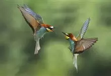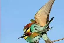 蓝颊蜂虎:是蜂虎科、蜂虎属的鸟类,共有2个亚种。体长27-33厘米,翼展46-49厘米,体重38-50克。嘴形细长而下弯,先端尖,…全部>>