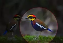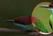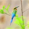 蓝喉蜂虎中型鸟类,体长26~28厘米。头顶至上背栗红色或巧克力色,过眼线黑色,腰和尾蓝色,翼蓝绿色,腰及长尾浅蓝,中央尾羽延长成针状,明显突出于外。颏喉蓝色,其余下体和两翅绿色。嘴细长而尖,黑色,…全部>>