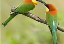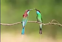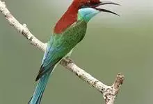 蓝颊蜂虎:是蜂虎科、蜂虎属的鸟类,共有2个亚种。体长27-33厘米,翼展46-49厘米,体重38-50克。嘴形细长而下弯,先端尖,…全部>>