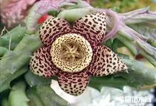 豹皮花 L.C.Leach)是马利筋亚科豹皮花属植物。肉质植物,茎亮绿色,几株簇生在一起,高约10厘米,状似仙人掌,四棱,棱稍钝,棱具粗厚软刺,光滑,绿色。无叶。…全部>>