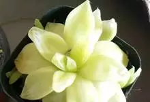京之华锦是独尾草科瓦苇属的一种植物。也叫凝脂菊,为京之华的斑锦变异品种,植株群生,扁棒状三角形肉质叶排成莲座状,叶表平展,背部隆起,全叶有黄色或白色纵向缟纹,少数叶整片都呈黄色或白色。株型小巧,…全部>>