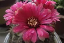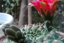 绯花玉 Speg.)是仙人掌科、裸萼球属多肉植物,植株呈扁球形,表皮墨绿色,刺针状,每个刺座有5枚灰色周刺,花生于球体顶端,夏季开花,花色有白、粉红、深红等。果实纺锤形,深灰绿色,种子黑色。…全部>>