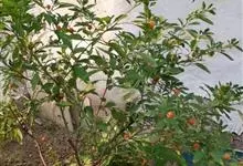 珊瑚樱是茄科茄属植物。株高达2米;植株无毛;叶窄长圆形或披针形,长1-6厘米,基部窄楔形下延,全缘或波状,侧脉4-7对;叶柄长2-5毫米;花单生,稀双生或成短总状花序与叶对生或腋外生,…全部>>
