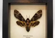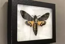 鬼脸天蛾,是鳞翅目天蛾科面形天蛾属动物。成虫翅展100~125毫米,体黑褐色;胸背有骷髅形斑纹;卵圆球形,直径约2毫米,淡黄绿色,表面光滑;老熟幼虫体长70~90毫米,蛹体长约56毫米;前翅为褐色,…全部>>