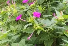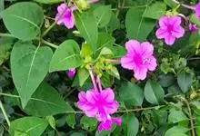 即紫茉莉,英文名:Four-o'clock,Marvel of Peru,为紫茉莉科、紫茉莉属多年生草本植物,一年生栽培。株高50~80cm。根粗壮,茎多分枝而散生。叶对生,卵形或心脏形。花数朵簇生…全部>>