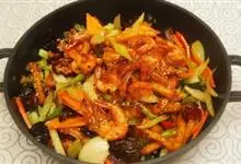 香锅虾是一道美食,制作原料主要有新鲜海虾、藕、洋葱。全部>>