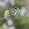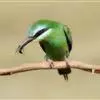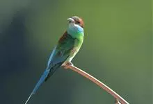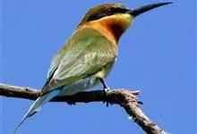 蓝颊蜂虎:是蜂虎科、蜂虎属的鸟类,共有2个亚种。体长27-33厘米,翼展46-49厘米,体重38-50克。嘴形细长而下弯,先端尖,…全部>>