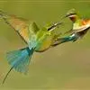绿喉蜂虎是佛法僧目、蜂虎科的小型鸟类,共有9个亚种。身长22-25厘米,翼展29-30厘米,体重15-20克。喉绿色,额部、头顶至上背为锈红色,其余上体均为亮绿色。中央尾羽延长且端段狭细,…全部>>