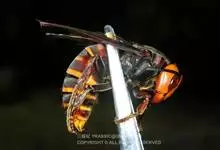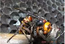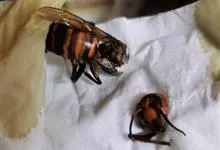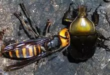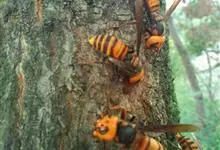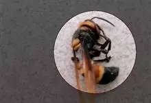 虎头蜂,又名黄脚胡蜂、黄马蜂,是膜翅目胡蜂科胡蜂属昆虫。虎头蜂前胸背板侧面具横皱,后足胫节长刚毛稀少,颅顶黑色或黄褐色,腹部第4背板端部常有1条宽黄带,腹部末端有螫针,连接着毒腺。因为头大得像老虎,…全部>>