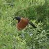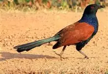 褐翅鸦鹃,是鹃形目鸦鹃科鸦鹃属的鸟类。褐翅鸦鹃的身体为黑色;头颈和胸带蓝紫色金属光泽并具黑亮的羽干纹,下胸至腹部泛金属绿光泽;两翼和肩部为棕栗色,外侧飞羽具暗色羽端,尾羽闪铜绿色光泽;虹膜赤红色,…全部>>
