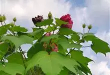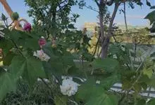 木芙蓉,锦葵科木槿属落叶灌木或小乔木。小枝上有细绒毛;叶片为卵状心形,托叶为披针形,常早落;花单生,花萼为钟形,花冠初为白色或淡红色,后逐渐变为深红色;果实为扁球形,有淡黄色的毛附着。花期8到10月。…全部>>