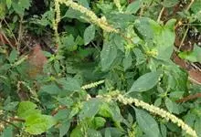 反枝苋是苋科苋属的一年生草本植物。株高达1米;茎密被柔毛;叶菱状卵形或椭圆状卵形,先端锐尖或尖凹,两面及边缘被柔毛,下面毛较密;穗状圆锥花序,顶生花穗较侧生者长;花被片长圆形或长圆状倒卵形,…全部>>
