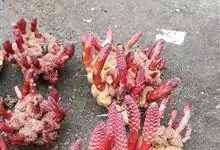 红冬蛇菰是蛇菰科蛇菰属的草本植物。株高2.5~9厘米;根茎苍褐色,扁球形或近球形,呈脑状皱褶;花茎长2-5.5厘米,淡红色;鳞苞片聚生于花茎基部,呈总苞状,花雌雄异株,花序近球形或卵圆状椭圆形,…全部>>