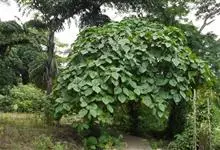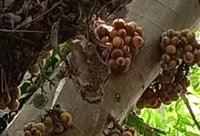 大果榕是桑科榕属的小乔木,株高可达10米;幼枝被柔毛;叶互生,宽卵状心形或近圆形;雄花无梗、匙形、花丝长,雌花生于雌株榕果内,子房白色;榕果簇生于树干基部或老茎短枝上、扁球形或陀螺形,…全部>>