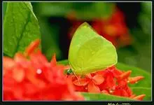 青带凤蝶Graphium sarpedon ,又名青凤蝶,是最普遍的中型凤蝶,飞行速度很快。青带凤蝶的翅膀中央有许多浅蓝色的斑点,很整齐地排列成一条直线。这些斑点由上而下逐渐变大,就像一条青色的带子。全部>>