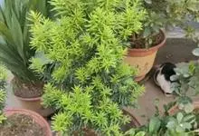 矮紫杉是东北红豆杉培育出来的一个具有很高观赏价值的品种。半球状密纵灌木,树形矮小,树姿秀美,终年常绿;叶螺旋状着生,呈不规则两列,与小枝约成45°角斜展,条形,基部窄,有短柄,先端且凸尖,上面绿色有…全部>>