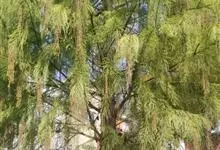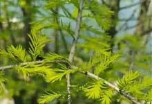落羽杉 Rich.),杉科落羽杉属木本植物。树干尖削度大,基部通常膨大,具膝状呼吸根,树皮棕色,裂成长条片;一年生小枝褐色,侧生短枝;叶线形;球果具短柄,熟时淡褐黄色,被白粉;花期3月;球果10月成熟。…全部>>