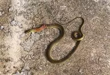 红脖颈槽蛇:游蛇科、颈槽蛇属的爬行动物。体型中等大小,全长约77-95厘米。头背草绿色,上唇鳞色稍浅,部分鳞沟黑色;头腹面污白色。躯干及尾背面草绿色,颈区及体前段鳞片间皮肤腥红色;躯干及尾腹面黄白色。…全部>>