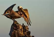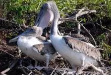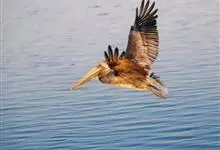 褐鹈鹕:是鹈鹕家族中体型最小的成员。体型粗大,体重6.5-9千克。嘴形宽大直长,上嘴尖端朝下弯曲,呈钩状;下嘴分左右二支,其间有一巨大而能扩缩的皮肤喉囊;鼻孔小,而位于嘴基。眼前部裸出。颈长而较细小…全部>>