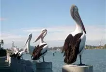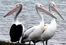 澳大利亚鹈鹕是一种大型涉禽,体重达13千克。生活于沿海及河川、湖泊等处。飞行力强而悠逸,常群飞群栖,极善于游泳,但不会潜水。游泳时张口捕鱼,将捕得的鱼兜入喉囊内。有时结群,排成长线,…全部>>