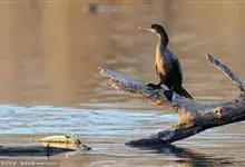 普通鸬鹚是属于鲣鸟目鸬鹚科鸬鹚属鸟类,又名水老鸦、鱼鹰、乌鬼、黑鱼郎等。体长720—900毫米,雌雄同型。通体黑色,有绿褐色金属光泽;喙厚重,喙基和喉囊橙黄色,脸颊及喉白色;夏羽颈及头饰具白色丝状羽,…全部>>