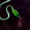 绿瘦蛇是游蛇科,瘦蛇属轻毒性后沟牙毒蛇。体型极细而长,长可达1.5米。头较窄长,与颈区分极明显;吻端略圆而平扁,超出下领;眼大,瞳孔呈一横缝;颊区呈一凹槽;躯干瘦长侧扁,尾甚长而细。背面鲜绿色,…全部>>