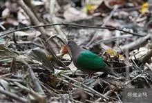 绿背金鸠体长约25厘米,是中等体型、尾甚短的地栖型斑鸠。下体粉红,头顶灰色,额白,腰灰,两翼具亮绿色。雌鸟头顶无灰色。飞行时背部两道黑色和白色的横纹清晰可见。主要栖息于2000米以下的山地森林中,…全部>>