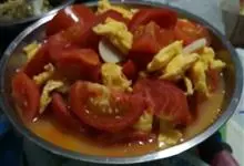 西红柿炒鸡蛋,是以西红柿和鸡蛋为主要材料制作的家常菜,主要食材有鸡蛋,西红柿,食用油,盐,清水,生抽,味精,葱花,白砂糖,…全部>>