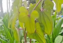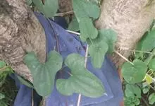 薯蓣是缠绕草质藤本。块茎为长圆柱形,垂直生长,长可达1米多,断面干时白色。茎通常带紫红色,右旋,无毛。单叶,在茎下部的互生,顶端渐尖,基部深心形、宽心形或近截形,边缘常3浅裂至3深裂。叶腋内常有珠芽。…全部>>