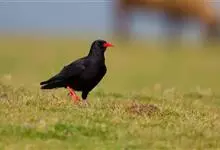 红嘴山鸦,是脊索动物门鸟纲雀形目鸦科鸟类。红嘴山鸦的成鸟通体羽毛纯黑色具有蓝色金属光泽,翼和尾泛有蓝绿色金属光泽;虹膜暗褐色,喙较为尖细,并且呈镰状下弯,喙和脚朱红色。…全部>>