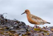 红腹滨鹬,是鹬科、滨鹬属的小型涉禽,体长23-25厘米,嘴较短而直、黑色,脚亦甚短、绿色。体较粗胖。夏季上体灰褐色具黑色中央纹,背具棕栗色和白色斑纹和羽缘,头侧和整个下体栗红色。冬季棕红色消失,…全部>>