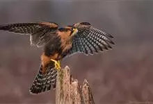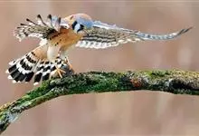 红隼:是隼科、隼属的小型猛禽之一。体重173-335克,体长305-360毫米。翅狭长而尖,尾亦较长,外形和共同爪隼非常相似。雄鸟头蓝灰色,背和翅上覆羽砖红色,具三角形黑斑;腰、尾上覆羽和尾羽蓝灰色,…全部>>