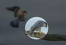 燕隼:是隼科、隼属的鸟类。体长约36厘米,体重140-340克。体形比猎隼、游隼等都小,为小型猛禽,雌鸟比雄鸟稍大;头部和颈后主要为灰黑色,颈后有一乳白色领斑;上体其余部分羽毛灰色,尾部稍淡,…全部>>