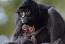 蛛猴属:共有7种。头体长约35-66厘米。头又圆又小,四肢细长,手没有拇指。毛茸茸的尾巴约有60-92厘米长,很会抓住树枝,其功能有点像手。尾巴比身体还长,缠绕性极强。能直立行走。…全部>>