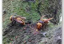 金环胡蜂是胡蜂科、胡蜂属昆虫。雌蜂体长约40毫米,工蜂体长25毫米,雌蜂体黑褐色,头部橙黄色,额片前缘弓形,中央凹,两边突出;触角12节,膝状,暗褐色;中胸背部中央有很细纵沟;翅膜质半透明,…全部>>