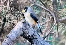 黄颈拟蜡嘴雀:小型鸟类,体长20-22厘米。嘴粗大,黑色。雄鸟整个头、颈、颏、喉和上胸辉黑色,两翅和尾亦为黑色,其余上体橙黄色,下体鲜黄色。雌鸟头、颈、颏、喉和上胸中央灰色或暗灰色,…全部>>