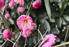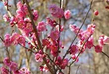 宫粉梅 Rehd.)是蔷薇科、李属植物,梅花品系中真梅系直枝梅类宫粉型,其花复瓣至重瓣,呈或深或浅的红色。落叶乔木,高达10米。树干褐紫色,有纵驳纹,小枝细而无毛,多为绿色。叶广卵形至卵形,…全部>>